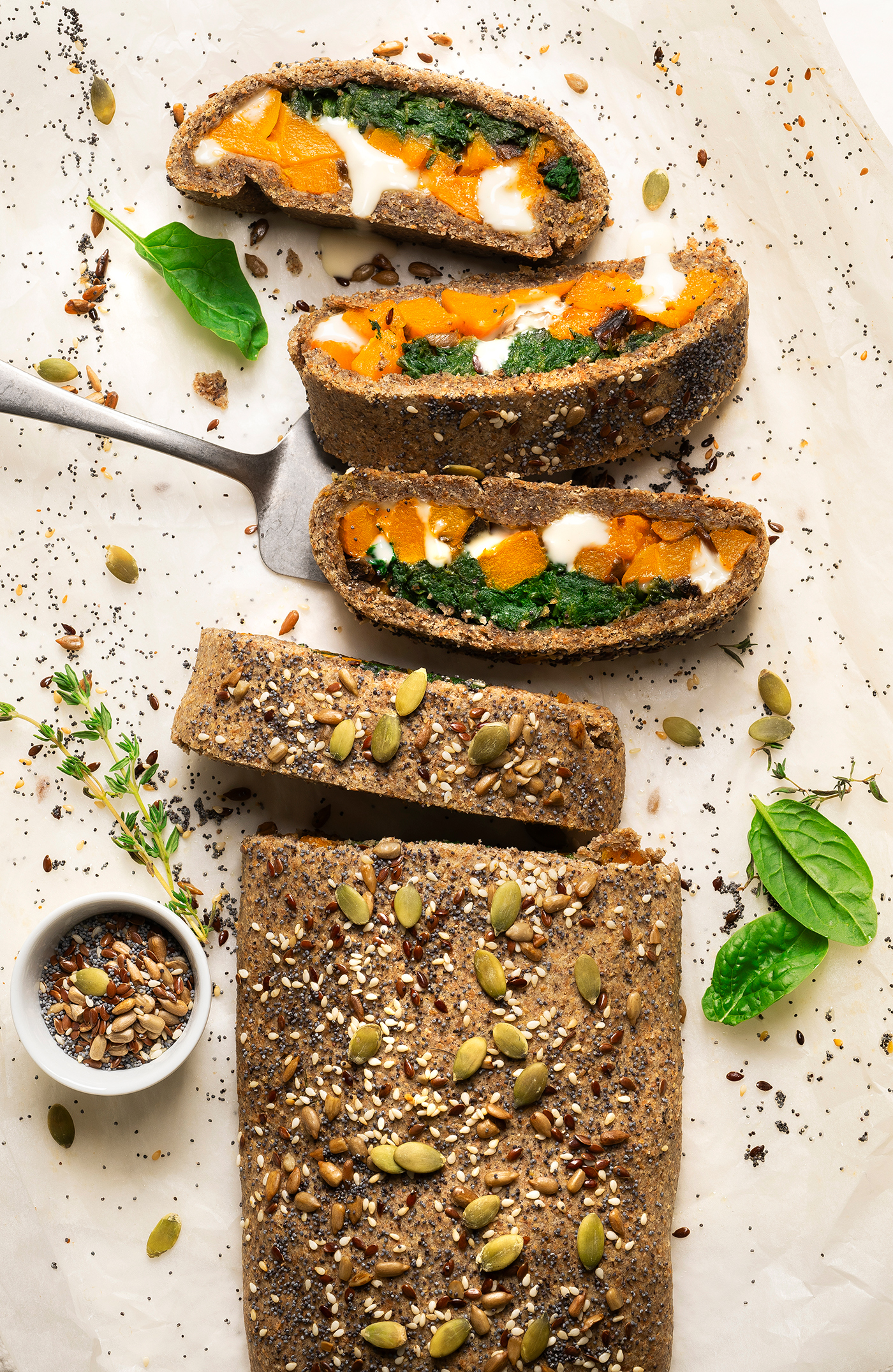 Lo strudel di grano saraceno con zucca e foglie verdi è un involucro delizioso di pasta fatta in casa (facilissima) per succose verdure autunnali. La sfoglia integrale racchiude un ripieno che bilancia alla perfezione la dolcezza di zucca e bietole con la sapidità del formaggio e dei porcini secchi.