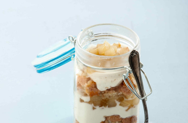 Un classico dolce al cucchiaio rivisitato, con una golosa crema di pere e ricotta, più una fragrante pasta biscottata alle nocciole
