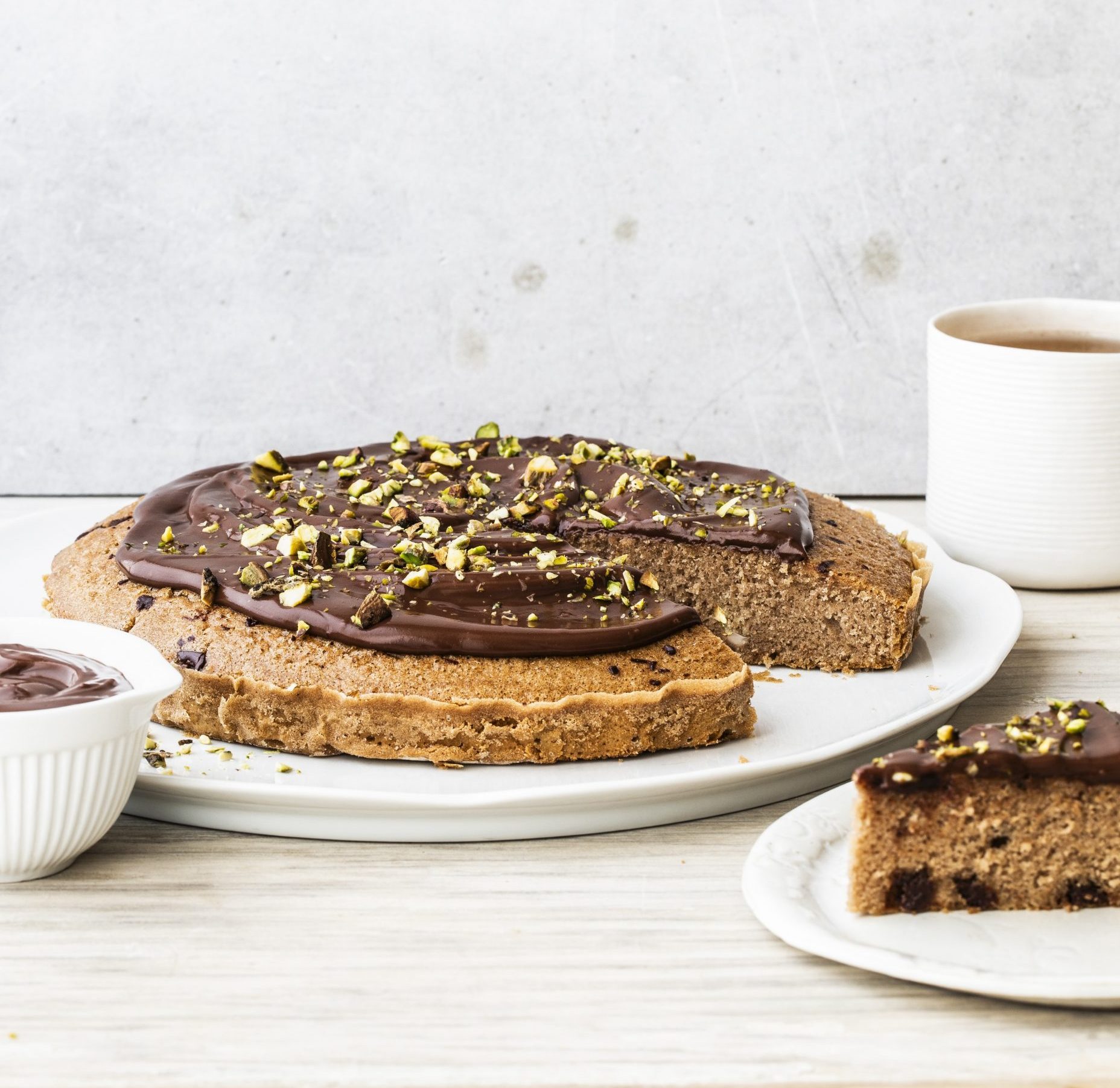 - Sformate la torta su un piatto da portata, una volta tiepida. Ricopritela con la crema e completatela con i pistacchi. Servitela a temperatura ambiente.