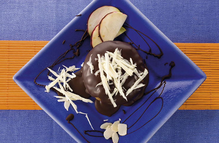 - Lasciate assestare i tortini per 5 minuti e sformateli direttamente nei piattini. Una volta raffreddati, ricopriteli col cioccolato fuso e poi cospargete le scaglie di cioccolato bianco. Fate consolidare i dolci in frigorifero per 30 minuti prima di servire.