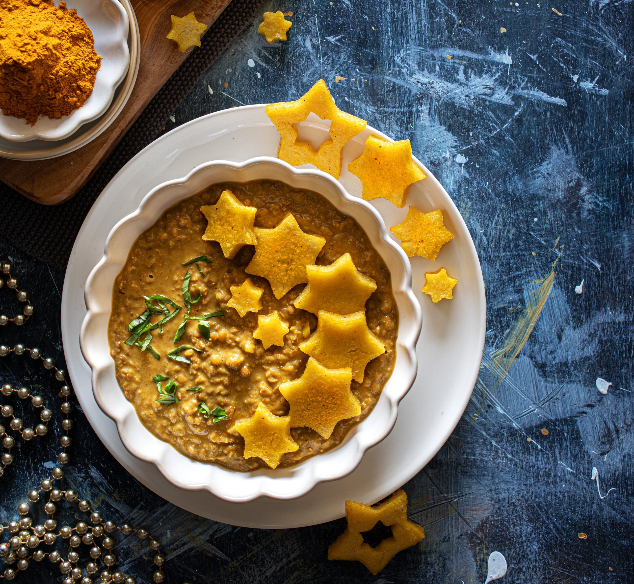 Curry di lenticchie e zucca con stelle di polenta