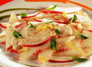 Carpaccio di pesche allo zenzero con salsina al limone e cannella