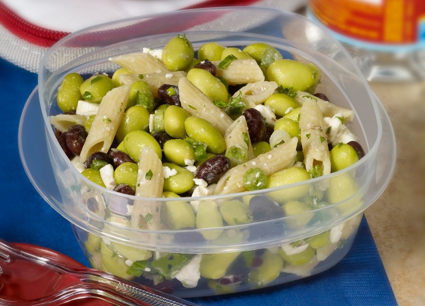 Insalata di pasta integrale con edamame, fagioli neri e feta