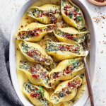 Le stelle natalizie invece sono di polenta, quindi senza glutine, affondate in una fonduta light. Molto scenografici i fagottini di cavolo nero, al posto delle solite crepes, mentre se il vostro cenone richiede assolutamente la pasta, i conchiglioni ai 7 sapori sono un primo elegante ed elaborato nonostante siano semplici da preparare.