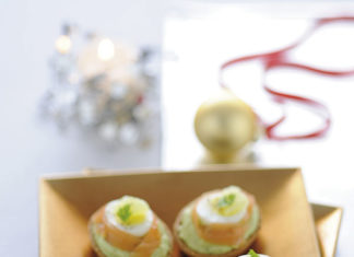 Ricette: Cestini con crema di avocado, salmone, uova di quaglia e lime - Perline di verdure - Frittelline all apaprica - Salatini di mais con caprino e noci dell'Amazzonia - Crumble di zucca arrosto e formaggio di capra