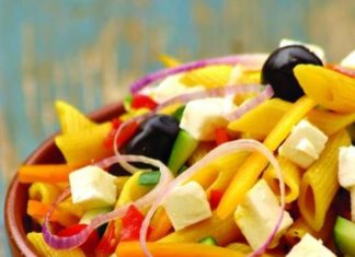 5 ricette con la feta: Cake di ceci, feta e pomodori secchi - Chiocciola mediterranea - Formaggio gratinato con salsa di ribes - Pennette alla greca - Pomodori ripieni alle erbe aromatiche