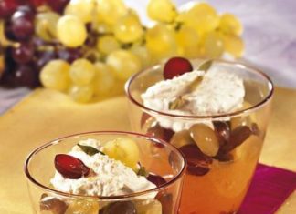 5 ricette con l'uva: Noci di patate ripiene d'uva con salsa di acciughe - Schiacciata con l'uva - Sfoglie croccanti con crema di fichi e uva bicolore - Torta salata con ripieno di uva e spinaci - Dessert di uva nera e pesche bianche