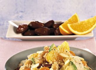 Ricette: Cuscus agrodolce con ceci, frutta e datteri - Fagottini di pasta fillo con datteri e noci - Salame di cioccolato e frutta secca mista - Biscotti integrali al miele con noci e datteri