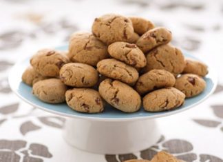 5 ricette per biscotti: Biscotti autunnali con uvetta e nocciole - Biscotti integrali allo zenzero e limone - Quadrotti mandorlati ai fiocchi di miglio - Biscotti integrali allo zenzero e noci - Mattutini alla quinoa