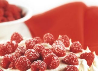 5 ricette con i lamponi: Bavarese ai lamponi - Torta fredda con crema di formaggi e gelatina di lamponi - Cannoncino di sfoglia ripieno di lamponi e limone - Semifreddo ai lamponi - Meringa ai lamponi