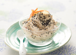 5 ricette con le mele: Zuppa di zucca e mele - Spezzatino di soia con mele renette e carote - Insalata con ceci e mela in salsa di zucca e nocciole - Gelato alla mela rossa con zenzero e sesamo nero – Torta alle mele vegana