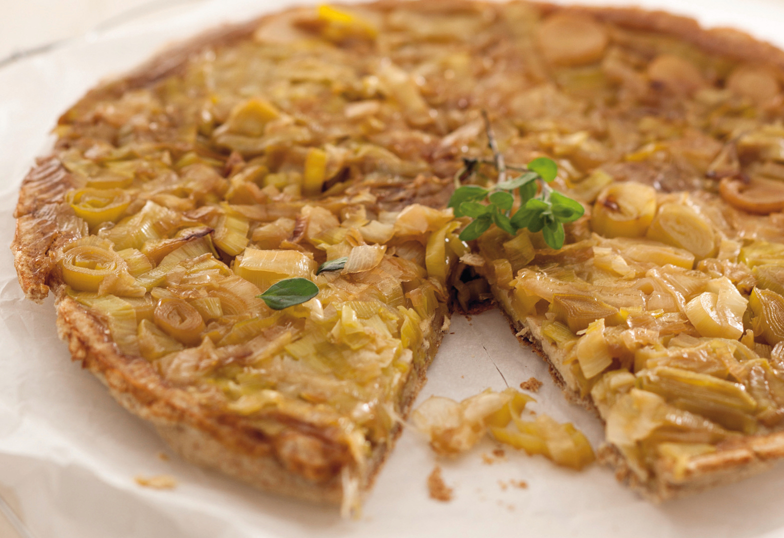 6 porri medi, 250 g di farina integrale, 150 g di tofu, mezzo cucchiaino di cumino, vino bianco secco, 3 cucchiai di zucchero integrale di canna, 6 cucchiai di olio extravergine di oliva, 2 cucchiai di salsa di soia, 1 cucchiaino di maggiorana, sale.
